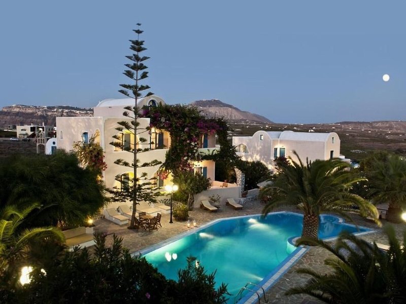 Poloha a okolie Hotel sa nachádza v centre tradičnej dediny Akrotiri na južnom pobreží ostrova Santorini a je ideálnym miestom pre tých, ktorí si chcú oddýchnuť v priateľskom a tichom prostredí. Slávna prehistorická dedina Akrotiri a jedinečné červené a biele pláže sú v pešej vzdialenosti od tohto hotela. Západ slnka za starým majákom a kontakt s miestnymi obyvateľmi ponúka hosťom ďalší veľmi zvláštny zážitok. Obec má všetko, čo si návštevník môže priať. Ponúkajú sa tu minimarkety a taverny pri mori, ale predovšetkým možnosť pravidelnej dopravy do az mesta Fira. Vzdialenosť od letiska Santorini je približne 9 km.