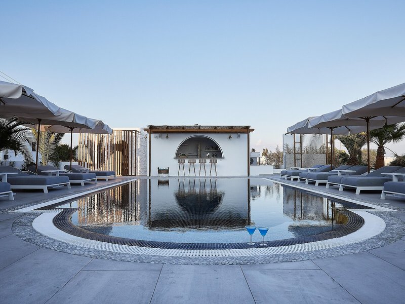 Lage & Umgebung Das Hotel liegt in Perivolos, ca. 700 m vom Sandstrand entfernt.