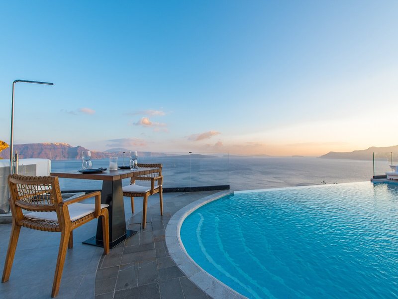Ďalšie informácie: Informácie o príchode Vzhľadom na veľkolepú krajinu a jedinečnú architektúru na Santorini môže byť dizajn hotelových balustrád nižší ako doma. Ak cestujete s deťmi, pred rezerváciou tohto ubytovania si skontrolujte, či to spĺňa vaše vlastné bezpečnostné požiadavky. Malé deti musia byť počas pobytu na hotelových balkónoch, terasách alebo verejných chodníkoch pod dozorom.