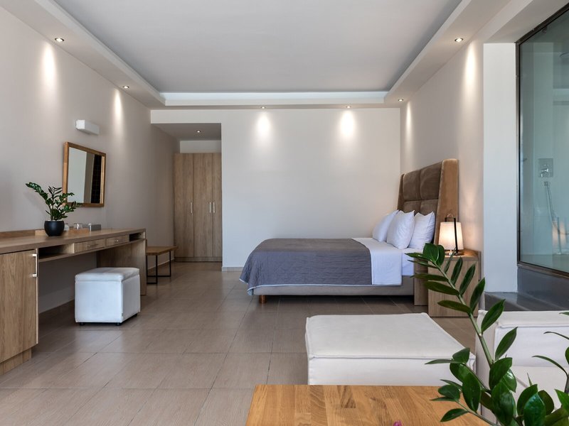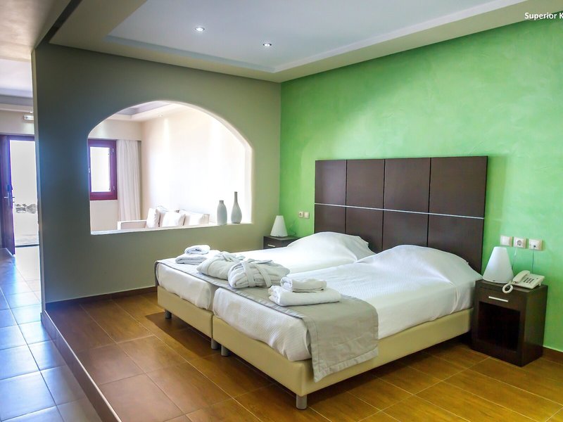 Ubytovanie: Izby sú vybavené klimatizáciou a kúrením. Hostia si môžu oddýchnuť a vychutnať si výhľad na more na balkóne alebo súkromnej terase väčšiny izieb. Izby sú vybavené manželskou posteľou a rozkladacou pohovkou. Prístelky je možné požiadať. K dispozícii je aj trezor, minibar a písací stôl. Štandardom je aj príslušenstvo na prípravu čaju/kávy. K dispozícii je aj žehliaca súprava a lis na nohavice. Okrem toho je k dispozícii telefón, TV so satelitnými/káblovými programami a Wi-Fi pripojenie (bezplatné). Vybavenie izieb zahŕňa papuče. Kúpeľňa so sprchovacím kútom a vaňou je vybavená aj sušičom vlasov. Pre väčšie pohodlie sú k dispozícii toaletné potreby. K dispozícii sú aj bezbariérové izby s bezbariérovou kúpeľňou. Rezort ponúka rodinné a nefajčiarske izby.