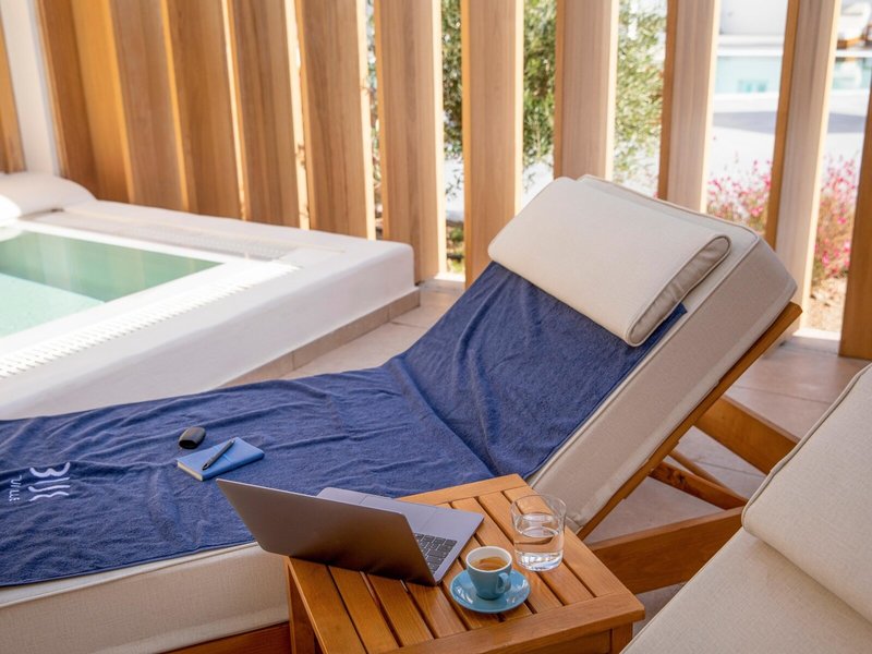 - Workation Double deluxe private whirlpool terrace (DZX5), Doppelzimmer, Nichtraucherzimmer, im Hauptgebäude, ca. 35 m², Gesamtanzahl der Räume in diesem Zimmertyp: 1, Aufteilung wie folgt: kombiniertes Wohn-/Schlafzimmer, 1 Double Bed, Klimaanlage: ohne Gebühr, individuell regelbar, kalt, Heizung: individuell regelbar, Fußboden: Fliesenboden, Safe, Sofa, Schreibtisch, Minibar: gegen Gebühr, Softdrinks, Wasser, alkoholische Getränke, Snacks, Minibarauffüllung, Telefon, Internet: WLAN/WiFi: ohne Gebühr, Fernseher: Flatscreen, im Schlafzimmer, Sat-TV, Roomservice, Reinigungsservice, separate Dusche, WC, Bademantel, Slipper, Föhn, Kosmetikspiegel, Terrasse: mit Liegen, mit Sitzgelegenheit, mit Whirlpool