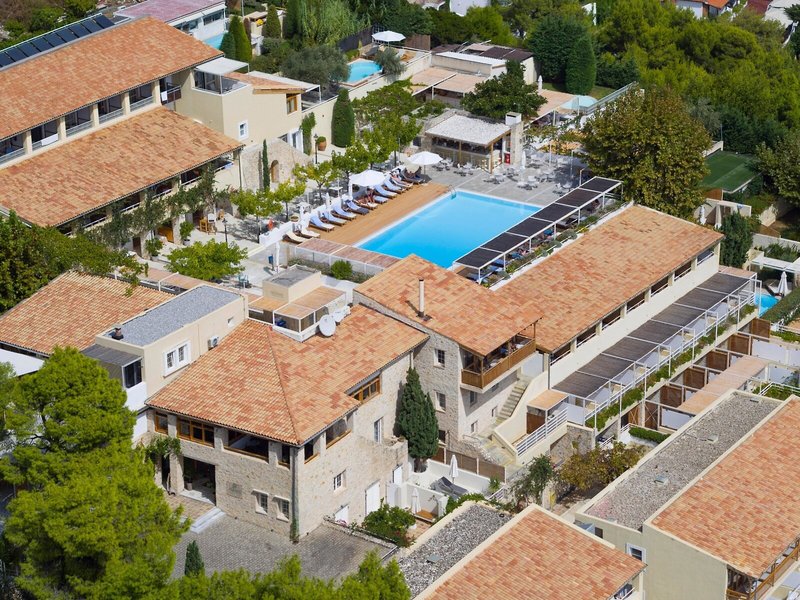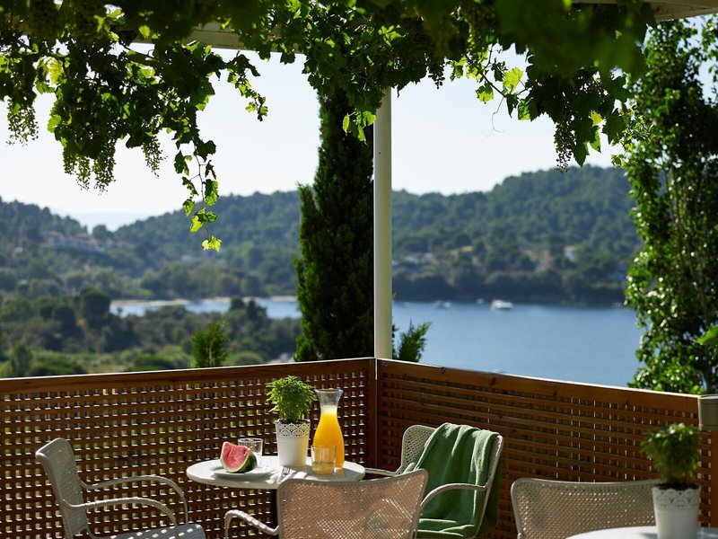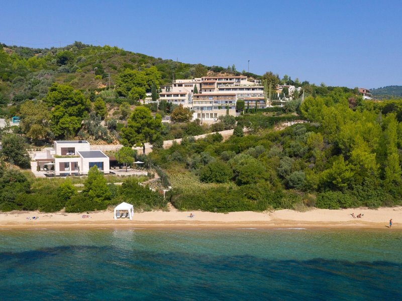 Poloha a okolie Hotel sa nachádza na kopci pokrytom borovicami, má výhľad na malebnú piesočnatú pláž Agia Paraskevi a ponúka úchvatný výhľad na more. Centrum Skiathosu je vzdialené približne 9 km. Populárna pláž Koukounaries je vzdialená asi 5 km. Hotel od pláže oddeľuje cesta.