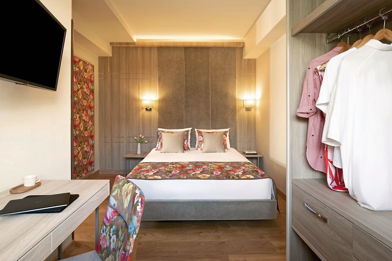 - 26-30 qm, Doppel, Deluxe, Meerblick, renoviert (2023), 1 Bad, Dusche, 1 WC, Haartrockner, Klimaanlage, Safe (kostenpflichtig), 1 TV (Sat-TV), Kühlschrank, Balkon oder Terrasse (möbliert)