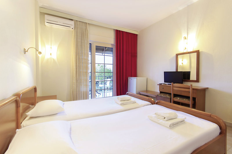 - Doppel, Gartenblick, Bettwäsche, Handtücher und Matratzen aus 100% Bio-Baumwolle, kombinierter Wohn-/Schlafraum, 1 Bad, WC, Klimaanlage, 1 TV (Sat-TV), Kühlschrank, Balkon (möbliert)