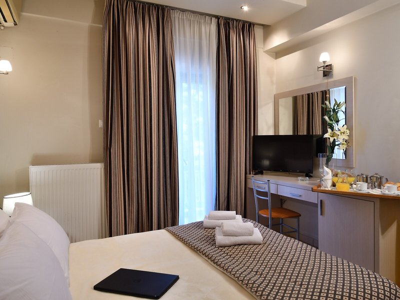 Lage & Umgebung Das Hotel liegt in der östlichen Vorstadt von Thessaloniki, zum internationalen Flughafen Thessaloniki sind es rund 4 km. Die Lage ist ruhig und bietet gute Anbindungen an alle Hauptstraßen der Gegend. Das Geschäftszentrum der Stadt liegt rund 15 km entfernt.