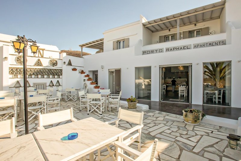 Das Porto Raphael Residences & Suites begrüßt Sie im Südosten der malerischen Insel Tinos, mit weitem Blick über die Ägäis bis hin zu den Nachbarinseln Mykonos und Delos. Die weitläufige Anlage fügt sich mit ihrer kykladischen Architektur harmonisch in die umliegende Landschaft ein und schafft ein stilvolles Refugium für Paare, Familien und Individualreisende, die die Authentizität und Schönheit der Kykladen in stilvollem Rahmen genießen möchten. Die Suiten und Apartments sind geschmackvoll eingerichtet und bieten teilweise Meerblick. Umgeben von gepflegten Gärten und nur wenige Schritte vom Sandstrand entfernt, erleben Sie hier entspannte Ferientage in ruhiger und zugleich gut angebundener Lage.