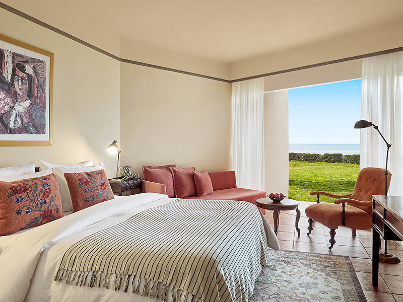Junior Suite (JS, cca 44 m²), klimatizácia, minichladnička, TV, Wi-Fi, trezor. Kúpeľňa/sprcha, WC, fén. 2 balkóny/terasy. Max. 4 dospelí.