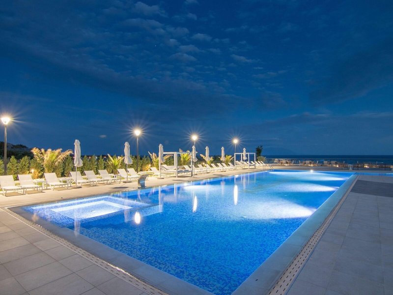 Sport & Fitness: Neben Innen- und Außenpools gibt es einen Kinderbadebereich. Erfrischende Getränke an der Pool-/Snackbar und wohlige Entspannung im Whirlpool bringen alle Wasserratten in die beste Stimmung. Auf der Sonnenterrasse mit Liegestühlen und Schirmen lässt sich der Urlaub genießen. Wem der Sinn nach Bewegung steht, werden Radfahren/Mountainbiking und Tennis angeboten. Freunden des Wassersports wird Tauchen angeboten. Den Gästen steht in der Unterbringung mit einem Fitnessstudio, Tischtennis, Yoga und Aerobic ein breites Spektrum an Indoor-Sportarten zur Auswahl. Im Haus werden verschiedene Wellnessangebote wie Spa, Sauna, Dampfbad, Hammam und Massage-Anwendungen offeriert. Ein Animationsprogramm und Live-Musik sind Möglichkeiten der Freizeitgestaltung.