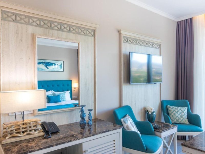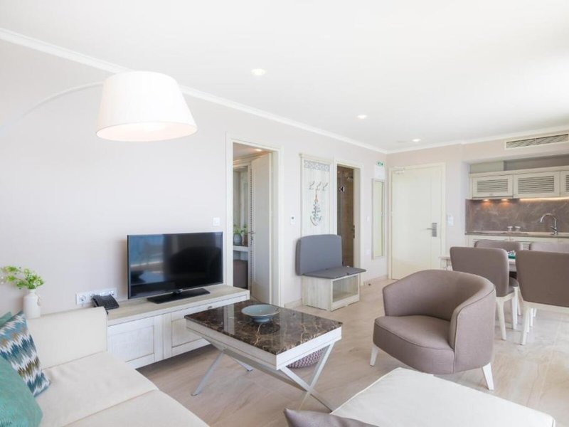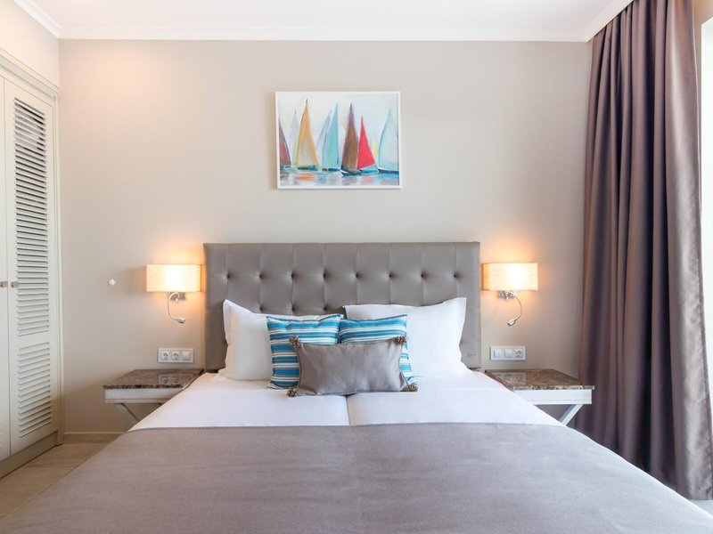 Vaše ubytovanie: Klimatizácia a kúrenie zabezpečujú príjemnú vnútornú klímu v izbách. Vo väčšine ubytovacích jednotiek si hostia môžu vychutnať výhľad na more zo svojho balkóna alebo terasy. Izby majú manželskú posteľ a rozkladaciu pohovku. Prístelky je možné vyžiadať. K dispozícii je aj trezor, minibar a písací stôl. K dispozícii je aj chladnička a príslušenstvo na prípravu kávy/čaju. Pre väčšie pohodlie hostí je k dispozícii lis na nohavice. K dispozícii je aj telefón, TV, budík a WiFi. K vybaveniu izieb patria papuče. Kúpeľne sú vybavené sprchovacím kútom a vaňou. Na každodenné použitie je k dispozícii sušič vlasov, župany a telefón. Ako zvláštnosť si hostia môžu vychutnať kozmetické produkty a výber uterákov v kúpeľniach. Je možné si zarezervovať bezbariérové izby. Hotel ponúka rodinné a nefajčiarske izby.