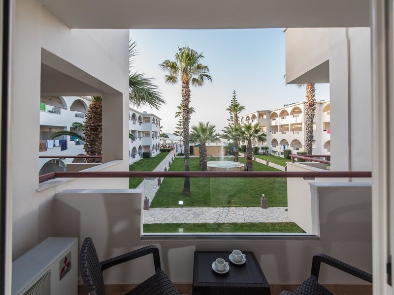 - Appartement 1 Bedroom (APX1), Nichtraucherzimmer, im Hauptgebäude, im Nebengebäude, eingeschränkter Meerblick, Gartenblick, ca. 45 m², bestehend aus 2 Doppelzimmern mit Verbindungstür, 2 Einzelbetten (90x190cm), 1 Doppelbett (140x200cm), Babybett: ohne Gebühr, Klimaanlage: gegen Gebühr, kalt, warm, Fußboden: Fliesenboden, Safe: gegen Gebühr, Kühlschrank, Kaffee-/Teezubereiter, Wasserkocher, Internet: WLAN/WiFi, Fernseher: Flatscreen, Reinigungsservice, Dusche, WC, Föhn, Balkon, Balkon oder Terrasse, Terrasse