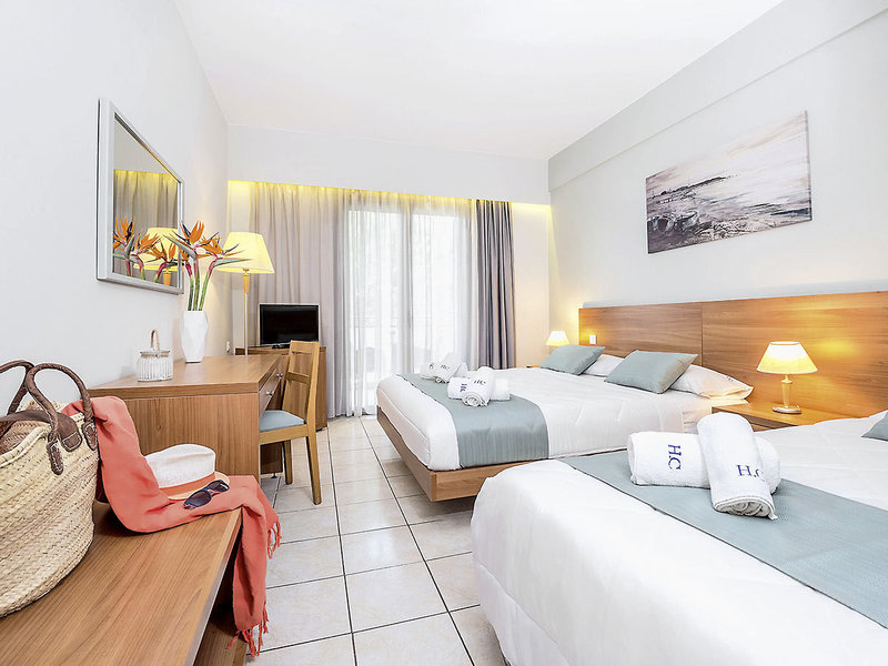 Familienzimmer (FZ, ca. 18 qm), Etagenbett für die Kinder, Klimaanlage (gegen Gebühr), Minikühlschrank (gegen Gebühr), TV, Mietsafe. Bad/Dusche, WC und Föhn. Balkon/Terrasse. Min./max. 2E+2K