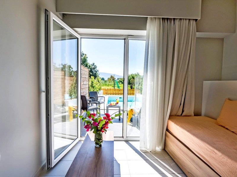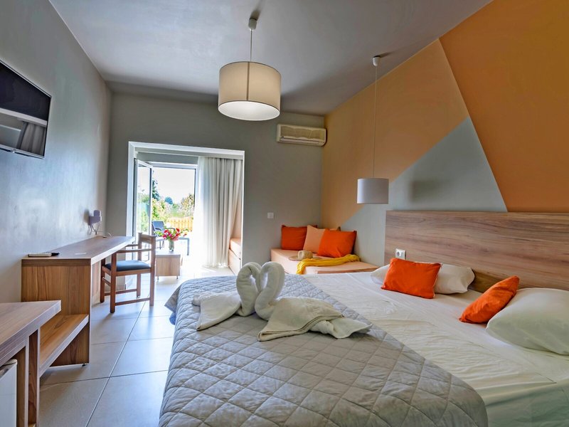 Ubytovanie: Klimatizácia a kúrenie zabezpečujú príjemnú vnútornú klímu. Hostia si môžu vychutnať výhľad do záhrady zo svojho balkóna alebo terasy. Izby sú vybavené manželskou posteľou alebo manželskou posteľou. K dispozícii sú samostatné spálne. Pre mladších hostí sú k dispozícii aj detské postieľky. Cennosti je možné bezpečne uložiť v trezore. K dispozícii je aj minichladnička a príslušenstvo na prípravu čaju/kávy. Pre pohodlie hostí je k dispozícii žehliaca súprava. K dispozícii je aj telefón, TV a bezplatné Wi-Fi pripojenie na internet. Kúpeľňa je vybavená sprchovacím kútom a vírivkou a obsahuje aj sušič vlasov.