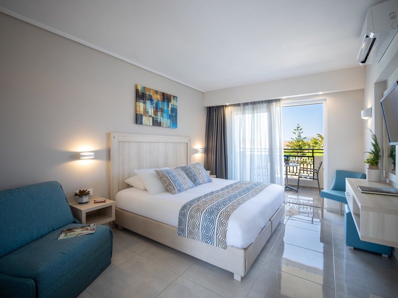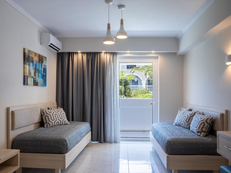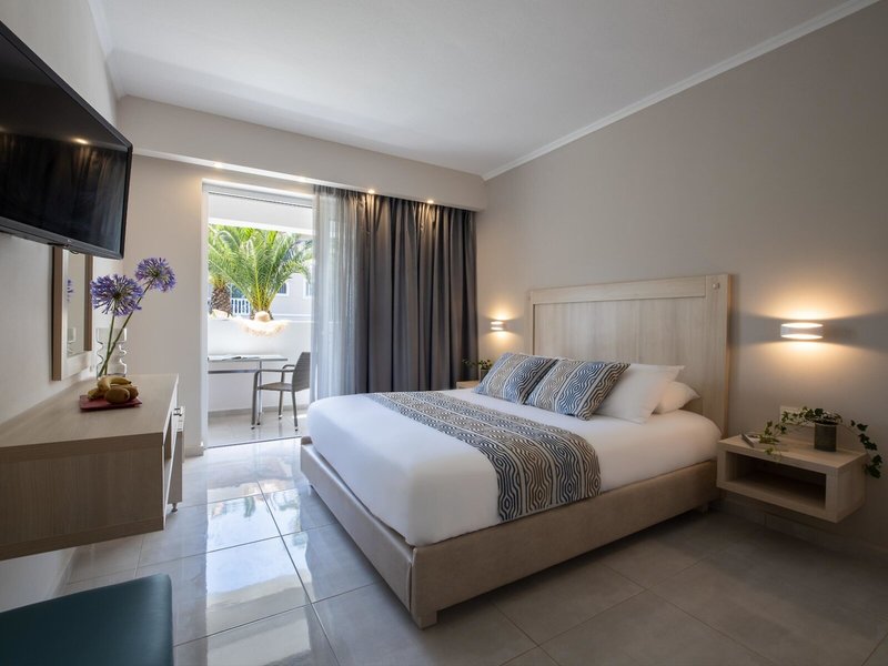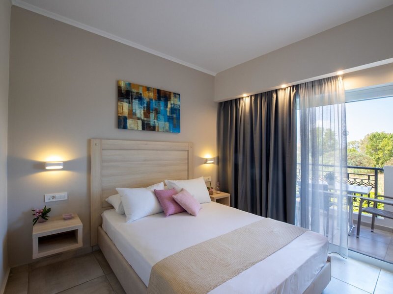Poloha a okolie Komfortný hotel sa nachádza asi 250 m od dlhej piesočnatej pláže v idylickej prírode zálivu Kalamaki. Pozýva vás na slnečné kúpanie a výlety loďou. Ponúka tiež ideálne zázemie na prechádzky, pozorovanie korytnačiek či jazdu na koni.