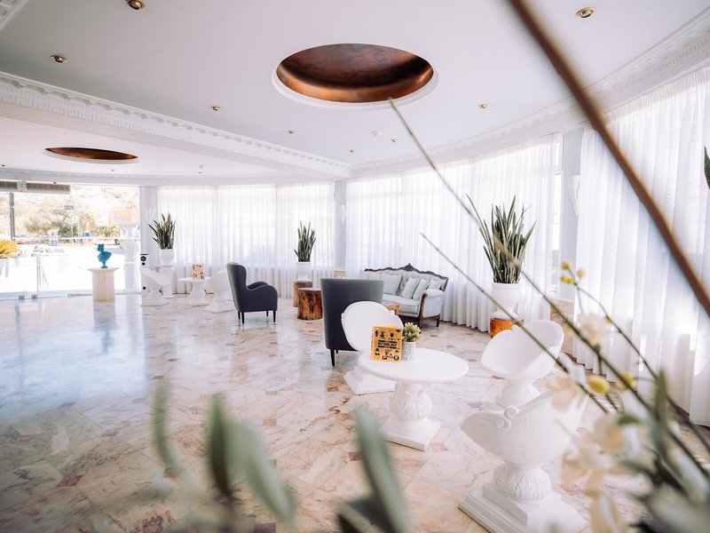 - Restaurant „Uranus Sky Restaurant“: Küche: griechisch, glutenfreie Gerichte, vegetarische Gerichte, à la carte, Reservierung nicht notwendig, gegen Gebühr, täglich 19:00 Uhr - 00:00 Uhr, angemessene Kleidung erwünscht