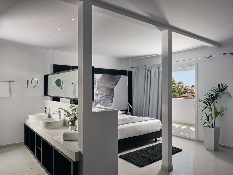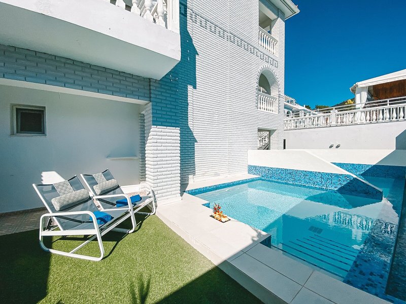 - Suita Master so súkromným bazénom (JSX5), suita, nefajčiarska izba, minimálny vek v izbe: 18 rokov, výhľad do záhrady, výhľad na stenu starogréckych znamení zverokruhu, cca 42 m², posledná čiastočná rekonštrukcia v roku 2024, 1 dvojlôžková posteľ, 1 rozkladacia pohovka, klimatizácia: individuálne nastaviteľná , Kúrenie: individuálne nastaviteľná, podlaha: dlažba, trezor: za poplatok, pohovka, žehlička, žehliaca doska, kávovar, Vybavenie na prípravu kávy/čaju, minibar: za poplatok, nealko nápoje: za poplatok, voda: za poplatok, alkoholické nápoje: za poplatok, občerstvenie: za poplatok, dopĺňanie minibaru: denne, telefón, Internet: WLAN/WiFi , televízor: v obývacej časti, v spálni , TV SAT, izbová služba: za poplatok, vaňa alebo sprcha, župan, papuče, sušič vlasov, kozmetické zrkadlo, terasa: s ležadlami, s ležadlami, s vlastným bazénom