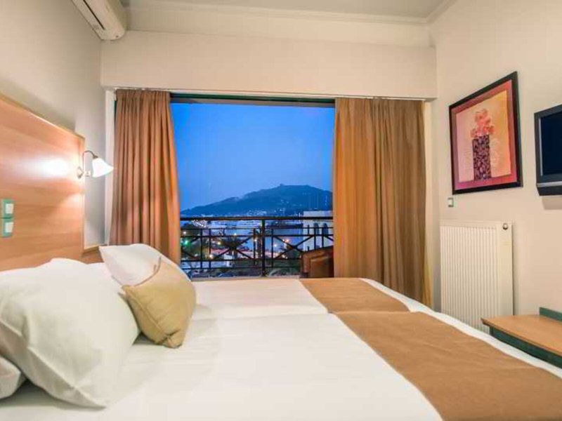 Poloha a okolie: Hotel sa nachádza na námestí Solomos v srdci mesta Zakynthos. Vďaka blízkosti hlavných atrakcií je ideálny pre obchodných cestujúcich aj turistov, ktorí navštevujú ostrov. Nachádza sa hneď vedľa mestského trhu, približne 50 metrov od Byzantského múzea a len na skok od prístavu. Hotel ponúka priamy prístup ku všetkým službám a vybaveniu vrátane taxíkov, bánk, autobusovej stanice a peších zón.
