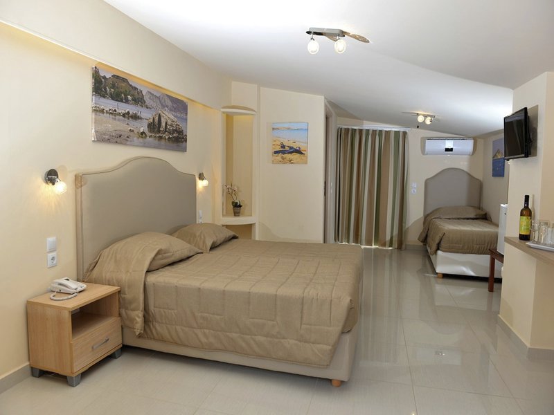 Rund 250 km vom Sandstrand entfernt gelegenes Hotel, besonders bei Hochzeitsreisenden beliebt. Am Strand sind Sonnenliegen und Sonnenschirme ggfls. gegen Gebühr verfügbar. Zum touristischen Zentrum sind es ca. 1 km. Die Stadt Zakynthos town ist ca. 4 km entfernt (Kalamaki ca. 8 km). Einkaufsmöglichkeiten liegen ca. 300 m vom Hotel, ein Supermarkt ist nach ca. 100 m zu erreichen. Die nächstgelegenen Bars und Restaurants erreichen Sie nach rund 200 m. Zur nächsten Diskothek gelangt man nach rund 500 m. Folgende Sehenswürdigkeiten sind vom Hotel aus erreichbar: Blue Caves (ca. 35 km) und Shipwreck View (ca. 40 km). Für Mobilität im Urlaub sorgen neben einem Mietwagen-Verleih auch ein Motorrad-Verleih und ein Taxistand sowie eine Bushaltestelle in etwa 300 m Entfernung. Zur ärztlichen Versorgung im Notfall befindet sich ein Krankenhaus in etwa 7 km Entfernung. Der Flughafen (ZTH) ist ca. 8 km entfernt. Zwischen Hotel und Flughafen verkehrt ein Shuttle (gegen Gebühr). Auch zum nächsten Strand wird ein Shuttle (gegen Gebühr) angeboten.