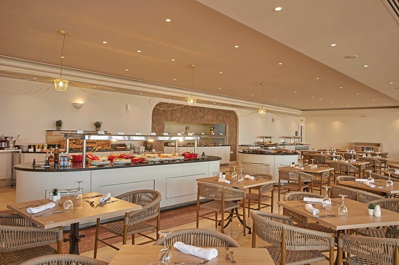 - All Inclusive: Raňajky (bufet), obed (bufet), večera (bufet), večera v reštaurácii à la carte (raz týždenne), nápoje zdarma (nealkoholické nápoje, minerálna voda, káva/čaj, pivo, džúsy, domáce víno, koktaily, voda, 10:00-23:00), občerstvenie (10:30-18:00)