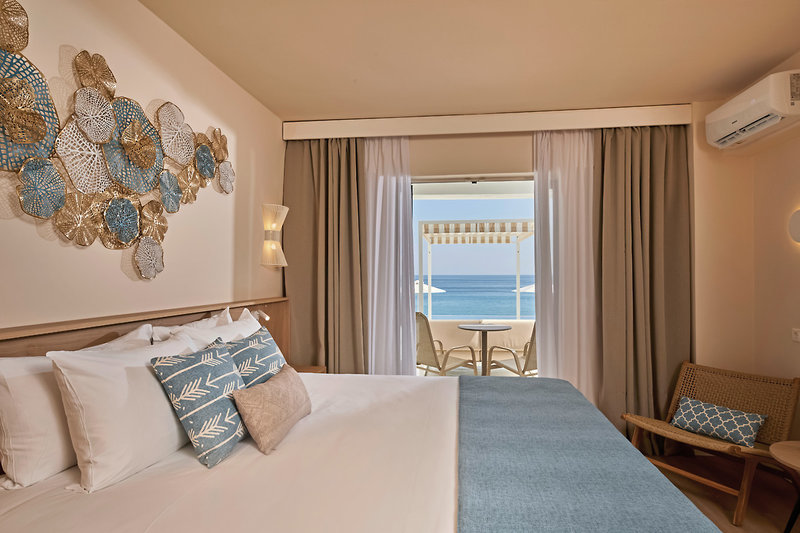 - 21-25 qm, Doppel, Meerblick (seitlich), 1 Bad, Badewanne, WC, Haartrockner, Klimaanlage, Mini-Kühlschrank, Safe, 1 TV (Sat-TV), WLAN, Wasserkocher, Balkon oder Terrasse (möbliert)