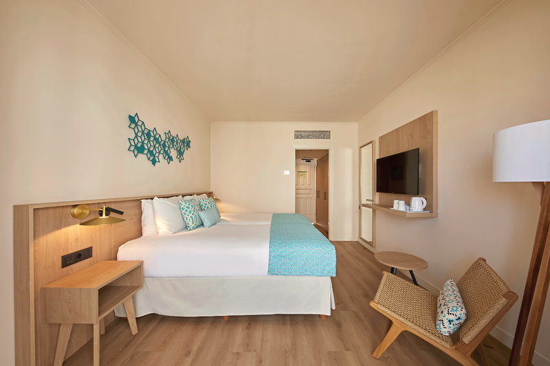 - 26-30 qm, Juniorsuite, Meerblick, kombinierter Wohn-/Schlafraum, Couch, 1 Bad, Badewanne, WC, Bademantel, Badeslipper, Haartrockner, Klimaanlage, Safe, 1 TV (Sat-TV, Smart-TV), WLAN, Wasserkocher, Kaffeemaschine, Terrasse (möbliert), direkter Poolzugang, Gemeinschaftspool, My Favorite Club Leistungen: Geräumigere Zimmer in bester Lage, exklusiver Poolbereich, personalisierter Check-in und Check-out, exklusive My Favorite Club Bar/My Favorite Club Lounge, reservierte Bereiche in den Restaurants, kostenfreie Nutzung des À-la-carte-Restaurant Mare Nubium (mit Reservierung)