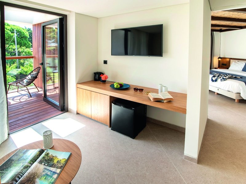 - Junior Suite Inland View (JSL1), Doppelzimmer, Mindestalter im Zimmer: 16 Jahre, im Hauptgebäude, Landseite, Landblick, letzte Komplettrenovierung 2019, Gesamtanzahl der Räume in diesem Zimmertyp: 1, Klimaanlage, Fußboden: Fliesenboden, Safe, Minibar, Internet: WLAN/WiFi: ohne Gebühr, Fernseher: Flatscreen, Roomservice, Dusche, Balkon