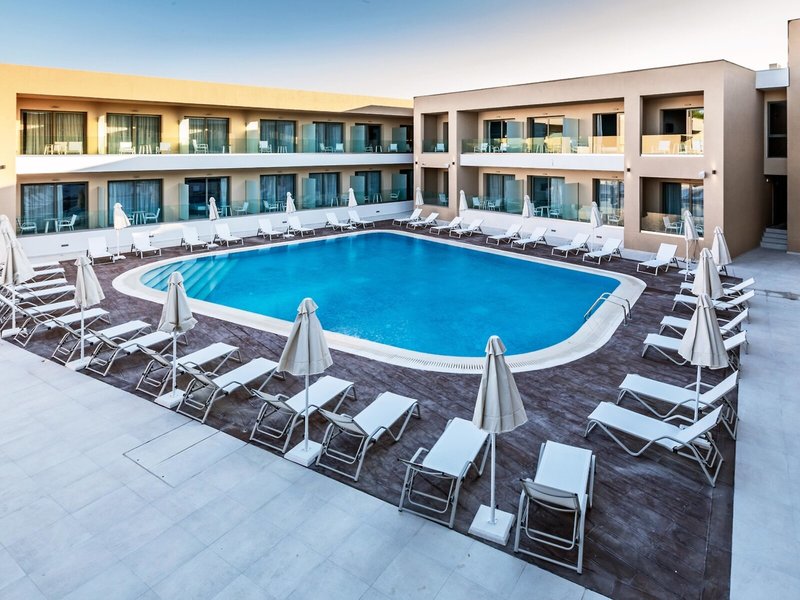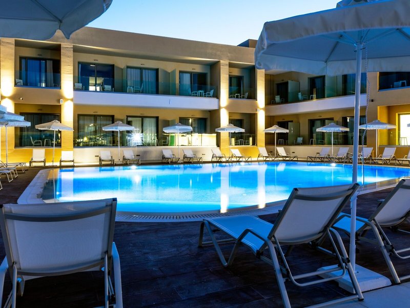 Poloha a okolie Tento štýlový hotel sa nachádza na okraji letoviska Laganas, ktoré má živú atmosféru, tradičné taverny a obchody. Na dlhú, jemnú piesočnatú pláž je to asi 400 m. Odtiaľ môžete podnikať nádherné výlety loďou, aby ste zažili fantastickú pobrežnú krajinu ostrova Zakynthos.