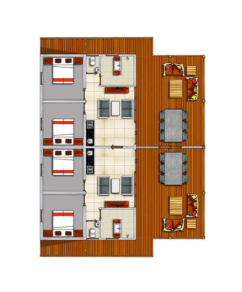 - Die Zimmerkategorie 4-BEDROOM VILLA AMBIENTE (BUG1) besteht aus 2 Appartements 2-BEDROOM APARTMENT REGAL (APG2), d. h. 4 Schlafzimmer und 2 Wohnzimmer.