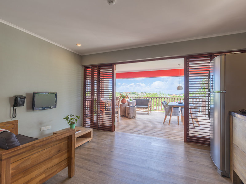 - 1-BEDROOM APARTMENT BREEZE (APX1), Appartement, Gartenblick, ca. 44 m², Gesamtanzahl der Räume in diesem Zimmertyp: 2, Aufteilung wie folgt: Wohnzimmer, 1 Schlafzimmer, 1 Doppelbett, Klimaanlage: individuell regelbar, Fußboden: PVC, Safe: ohne Gebühr, Standventilator, Sitzecke, Bügeleisen, Bügelbrett, Küche, Kühlschrank, Gas/E-Herd, Kochplatte, Mikrowelle, Geschirrspüler, Espressomaschine, Kaffee-/Teezubereiter, Esstisch, Telefon, Internet: WLAN/WiFi: ohne Gebühr, Fernseher: Flatscreen, im Wohnbereich, Reinigungsservice, Dusche, Regendusche, WC, Föhn, Balkon oder Terrasse: mit Sitzgelegenheit
