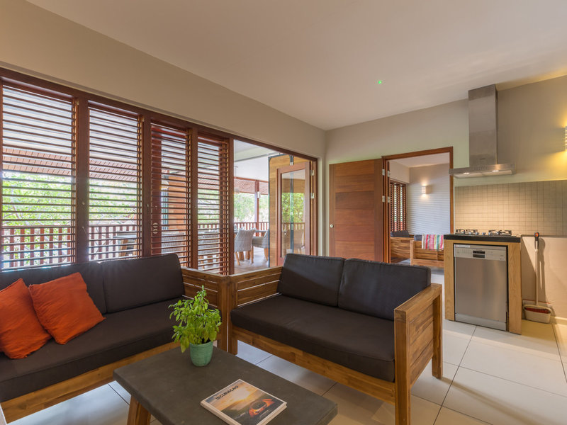 - 3-BEDROOM VILLA AZUL (BUG2), Villa, Gartenblick, ca. 85 m², Gesamtanzahl der Räume in diesem Zimmertyp: 4, Aufteilung wie folgt: Wohnzimmer, 3 Schlafzimmer, Klimaanlage: individuell regelbar, Fußboden: PVC, Safe: ohne Gebühr, Standventilator, Sitzecke, Sofa, Bügeleisen, Bügelbrett, Küche, Kühlschrank, Gas/E-Herd, Kochplatte, Mikrowelle, Espressomaschine, Esstisch, Telefon, Internet: WLAN/WiFi: ohne Gebühr, Fernseher: Flatscreen, im Wohnbereich, Reinigungsservice: mehrmals pro Woche 24 Stunden, ohne Gebühr, Dusche, WC, 2 Bäder, Föhn, Terrasse: mit Sitzgelegenheit, Veranda