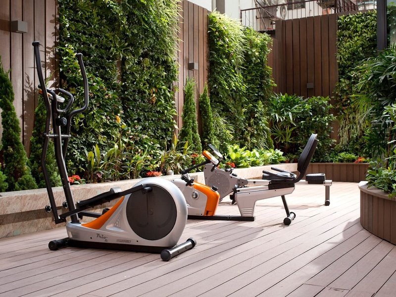 Sport & Fitness: Auf der Terrasse können die Urlauber schönes Wetter genießen. Im Fitnessstudio kann man nach einem erlebnisreichen Tag trainieren und neue Kraft und Wohlbefinden tanken.
