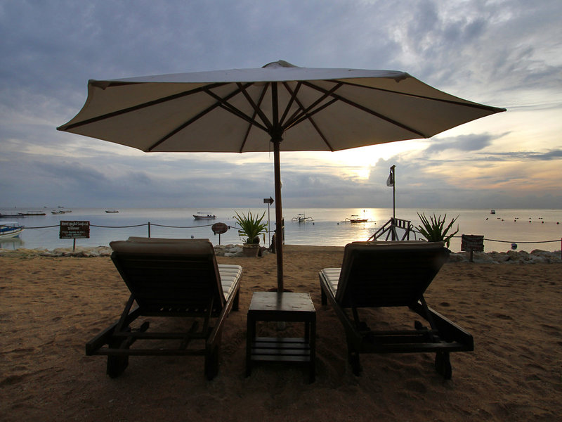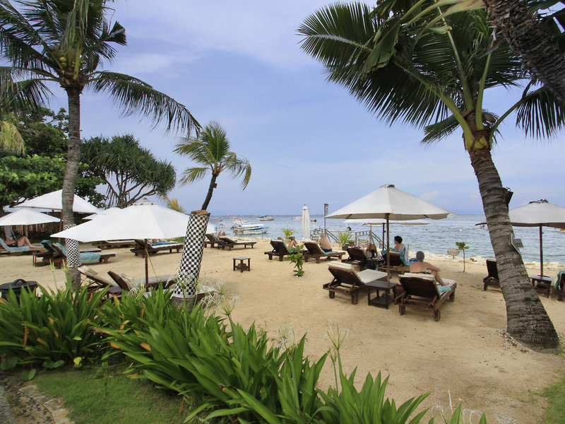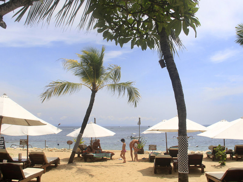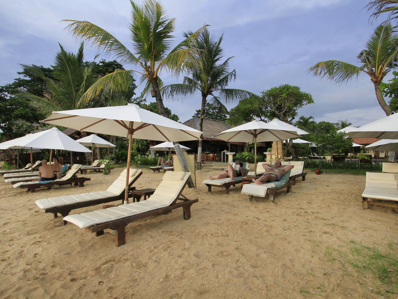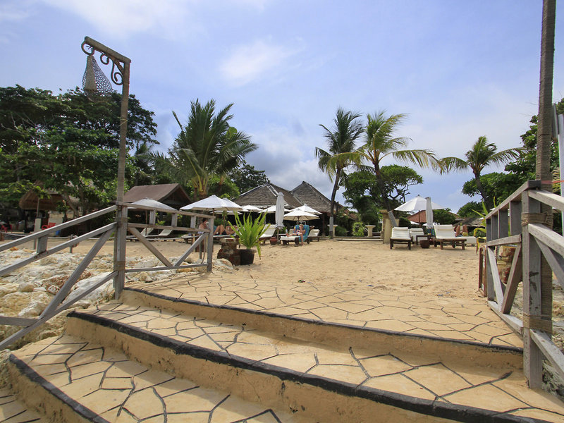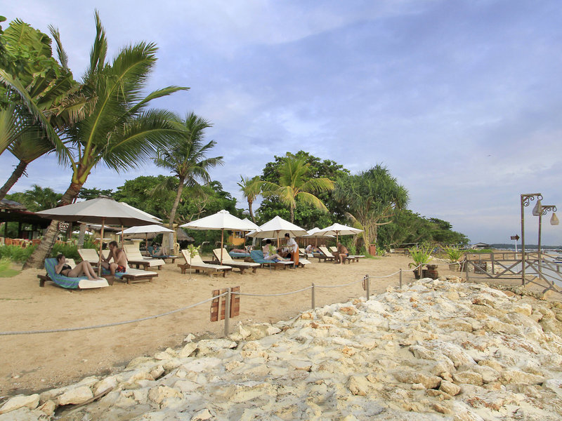 - Strand "Tanjung Benoa Beach": Sand, felsig, Strandlänge: ca. 30 m, Treppen zum Strand, Badeschuhe empfehlenswert, öffentlich, hoteleigen, Liegestühle: ohne Gebühr, Sonnenschirme: ohne Gebühr