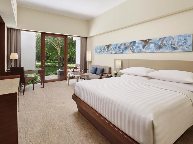 - Deluxe Garden View Room (DZX1), Doppelzimmer, Gartenseite, Gartenblick, Blick auf Lush Garden, ca. 35 m², Gesamtanzahl der Räume in diesem Zimmertyp: 1, Aufteilung wie folgt: kombiniertes Wohn-/Schlafzimmer, 1 Doppelbett (180x200cm), Babybett: ohne Gebühr, Anfrage & Reservierung notwendig, Klimaanlage: ohne Gebühr, Januar - Dezember, individuell regelbar, zentral gesteuert, Fußboden: Fliesenboden, Safe: ohne Gebühr, Sofa, Schreibtisch, Bügeleisen, Bügelbrett, Kaffee-/Teezubereiter, Wasserkocher, Minibar: gegen Gebühr, Softdrinks: gegen Gebühr, Wasser: gegen Gebühr, alkoholische Getränke: gegen Gebühr, Snacks: gegen Gebühr, Minibarauffüllung: täglich, Telefon, Internet: WLAN/WiFi: ohne Gebühr, Fernseher: Flatscreen, im Schlafzimmer, Deutsche Welle, Kabel-TV, DVD-Player, Radio, iPod-Docking Station, Roomservice: gegen Gebühr, Reinigungsservice: täglich, ohne Gebühr, bei All Inclusive inklusive, Dusche, separate Dusche, WC, Bademantel: ohne Gebühr, Slipper: ohne Gebühr, Föhn, Balkon oder Terrasse: mit Sitzgelegenheit, Nebenkosten: Wasser: ohne Gebühr