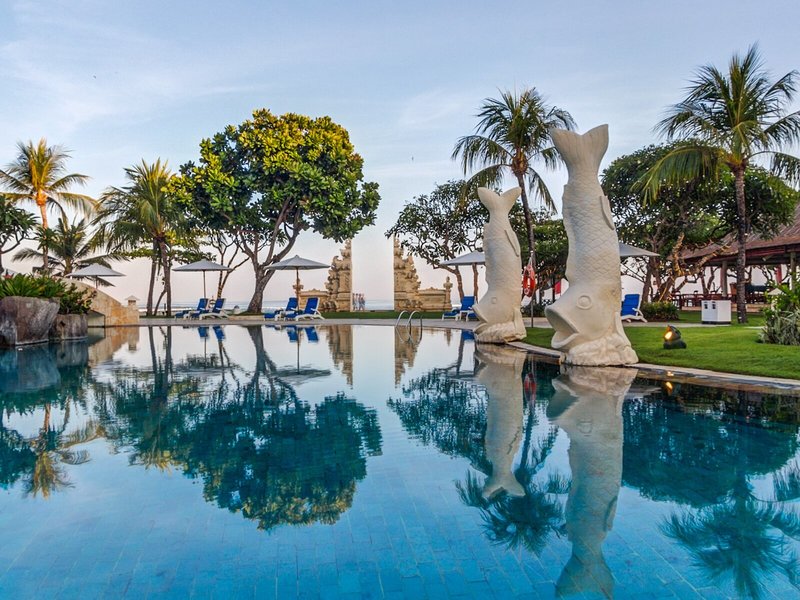 Poloha a okolie Rezort sa nachádza uprostred oázy s rozlohou približne 8 hektárov rozsiahlych, starostlivo udržiavaných tropických záhrad a nachádza sa priamo na obľúbenej pláži South Kuta. Rezort je obklopený najznámejšou piesočnatou plážou na Bali, v tieni kokosových stromov a plný očarujúcej balijskej pohostinnosti. Mimoriadne výhodná je aj pešia vzdialenosť do obchodov, reštaurácií a zábavných podnikov. Po niekoľkých minútach sa dostanete na medzinárodné letisko Ngurah Rai na Bali.