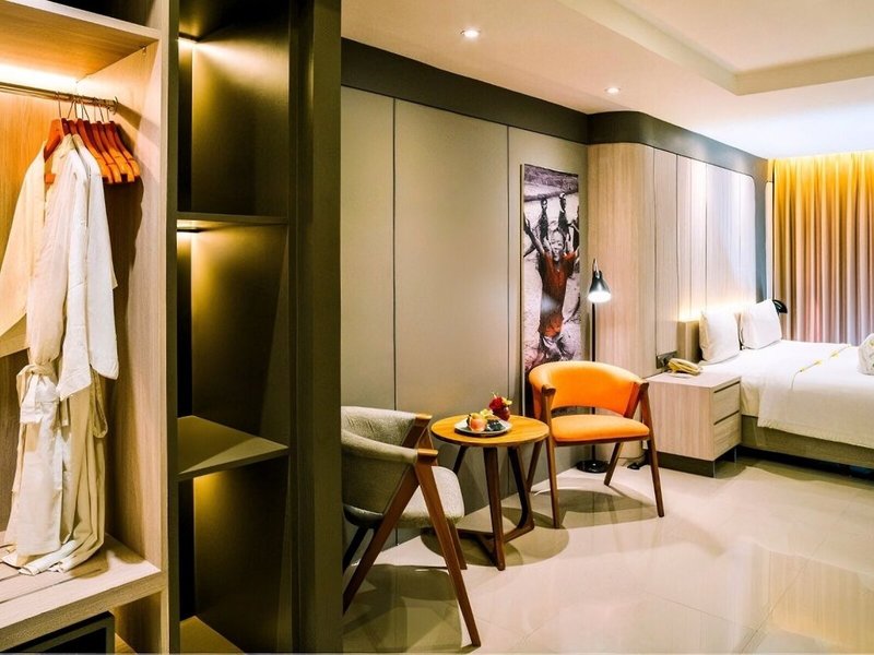 Lage & Umgebung Das Hotel liegt in der Nähe des Zentrums von Kuta (es sind ca. 15 Gehminuten). In der Umgebung finden die Gäste Restaurants, Unterhaltungs- und Einkaufszentren sowie Nachtclubs. Das Hotel liegt jeweils nur etwa 10-15 min vom Strand von Kuta und vom internationalen Flughafen Ngurah Rai entfernt.