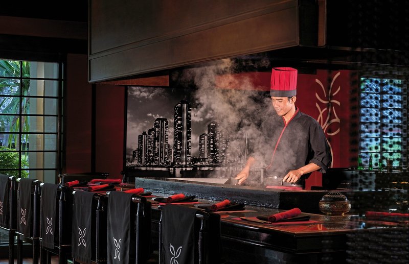 - 5 À-la-carte-Restaurants: asiatische Küche, landestypische Küche, Fisch/Meeresfrüchte, mediterrane Küche, internationale Küche, Grillspezialitäten, Raucherzone, Nichtraucherzone, mit Terrasse, am Strand