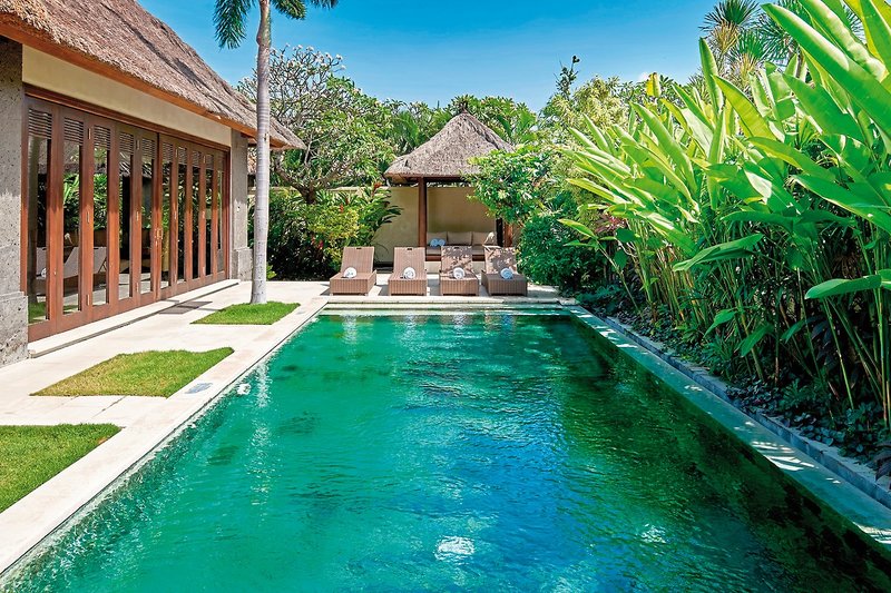- 151-200 qm, Villa, Bettwäsche, Handtücher und Matratzen aus 100% Bio-Baumwolle, 1 separates Schlafzimmer, kombinierter Wohn-/Essraum, Badewanne, Außendusche, Bademantel, Badeslipper, Haartrockner, Klimaanlage, Minibar kostenpflichtig, Safe, TV (Smart-TV), Kaffee/Tee, Veranda, Privatpool, hochwertige Badartikel, bei Ankunft im Zimmer Obstkorb