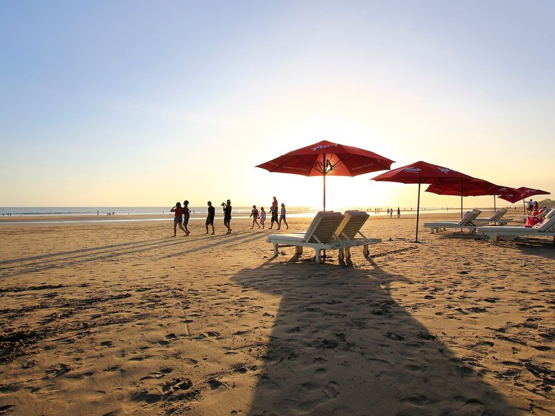 Lage & Umgebung Das Hotel befindet sich am ruhigen weißen Sandstrand von Seminyak auf der nördlichen Seite von Kuta. Direkt in der Nähe findet man Einkaufscenter und andere touristische Sehenswürdigkeiten. Die Transferzeit zum internationalen Flughafen Ngurah Rai beträgt etwa 20 min. Das Zentrum Kutas ist nach ca. 5 min zu erreichen, die Stadt Denpasar nach ca. 20 min.