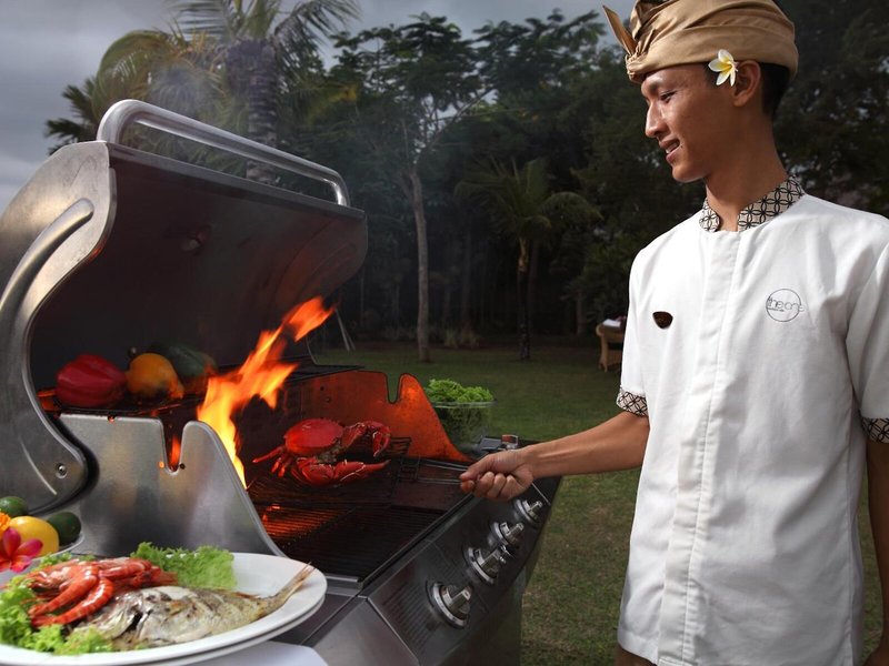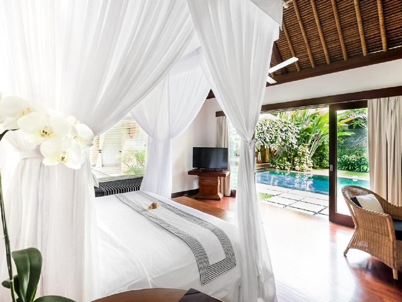 Lage & Umgebung Das Anwesen liegt im angesagten Gebiet von Seminyak. Nach nur wenigen Minuten erreichen die Gäste den ausgedehntesten, goldglänzenden Sandstrand der Insel sowie zahlreiche Restaurants. Die Fahrt nach Kuta Beach dauert etwa 20 min, während der internationale Flughafen Ngurah Rai nach etwa 30 min Fahrzeit erreicht werden kann.