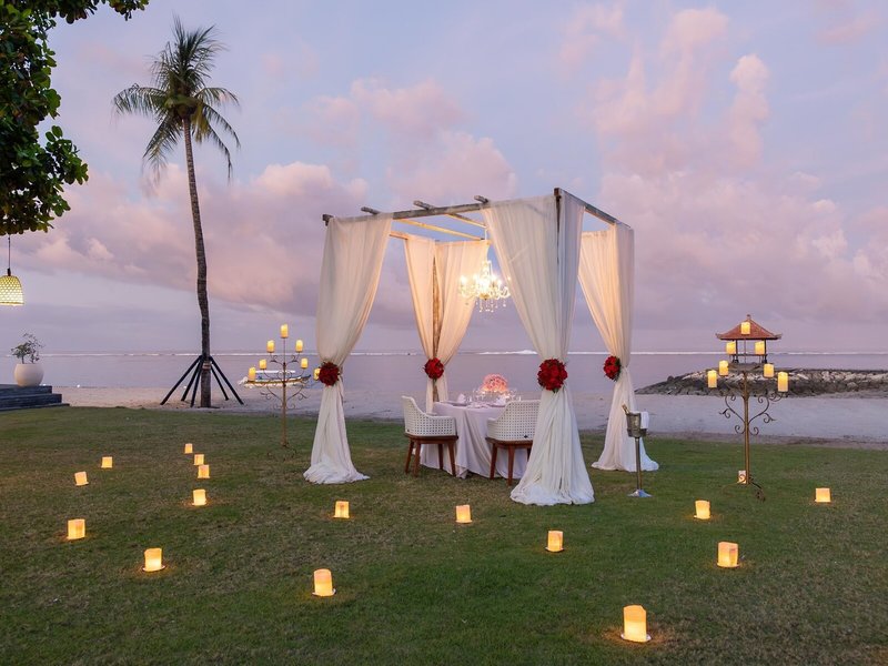 Poloha a okolie Veľký rezortný komplex sa nachádza severne od Nusa Dua s priamym prístupom na bielu piesočnatú pláž Tanjung. Pri odlive je kúpanie možné len obmedzene. Čas prenosu: cca 20 minút.