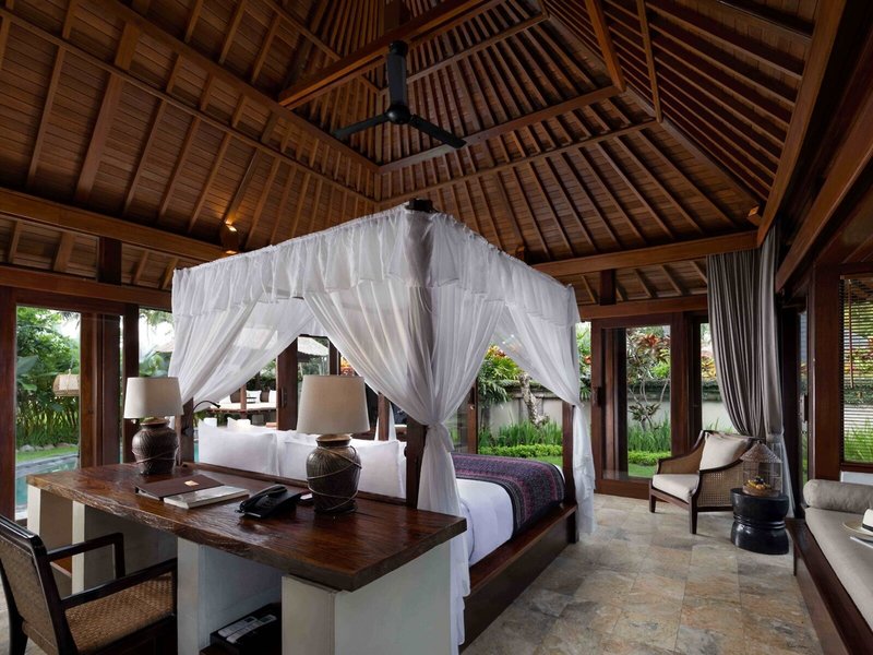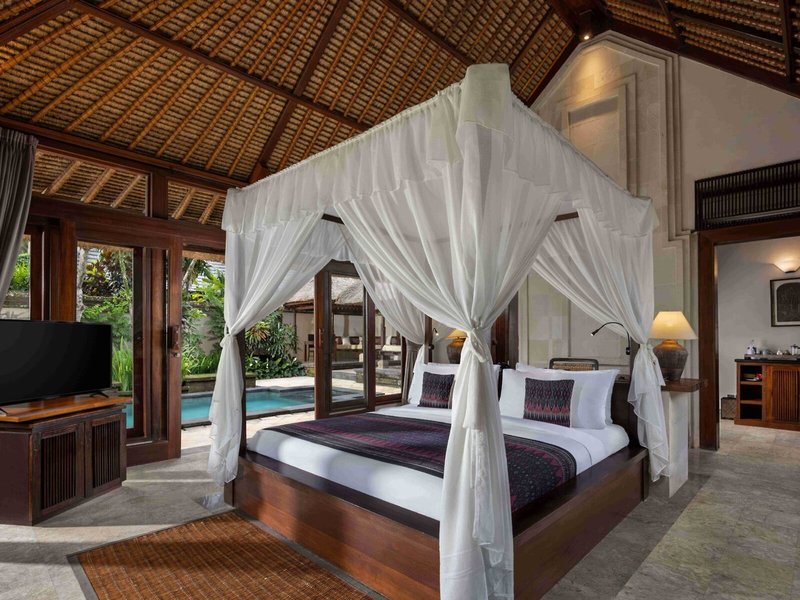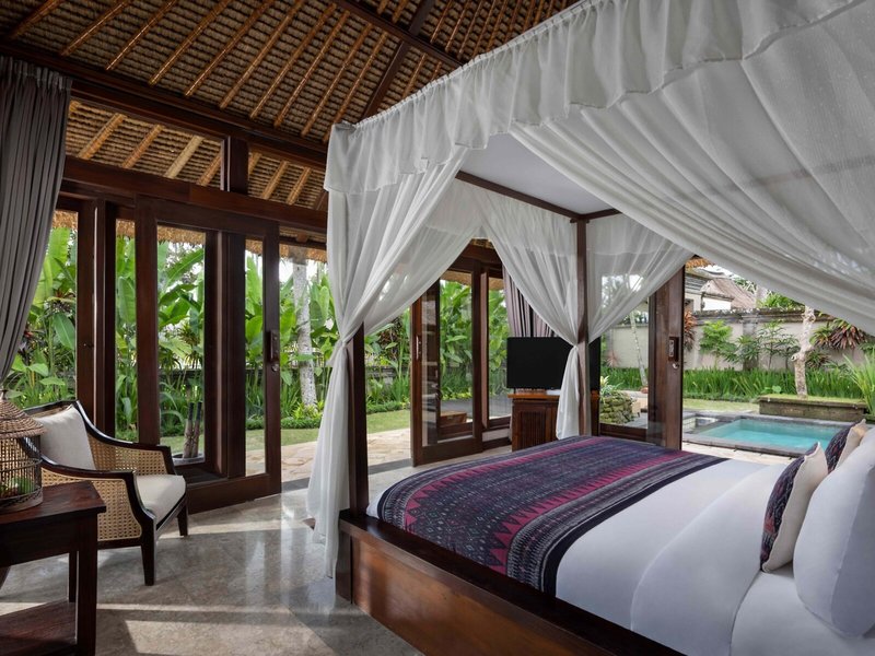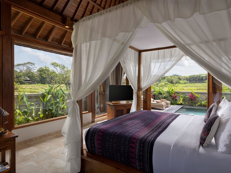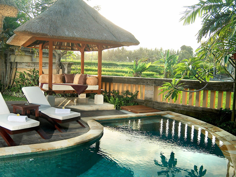 - Rice Field Pool Villa (VIY1), Villa, Gartenseite, Gartenblick, Blick auf Rice Field View, ca. 60 m², Gesamtanzahl der Räume in diesem Zimmertyp: 1, Aufteilung wie folgt: 1 Schlafzimmer, 1 King Size Bett (200x200cm), Babybett: ohne Gebühr, Anfrage & Reservierung notwendig, Moskitonetz, Klimaanlage: ohne Gebühr, individuell regelbar, Fußboden: Fliesenboden, Safe: ohne Gebühr, Deckenventilator, Schreibtisch, Kaffee-/Teezubereiter, Esstisch, Minibar: gegen Gebühr, Wasser: ohne Gebühr, Telefon, Internet: WLAN/WiFi: ohne Gebühr, Fernseher: Kabel-TV, Roomservice: täglich 07:00 Uhr - 23:00 Uhr, gegen Gebühr, Reinigungsservice: täglich, ohne Gebühr, Dusche, Außendusche, Badewanne, separates WC, Bademantel: ohne Gebühr, Slipper: ohne Gebühr, Föhn, Balkon oder Terrasse, Terrasse: mit Liegen, mit Sitzgelegenheit, mit Private Pool
