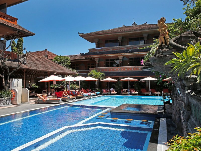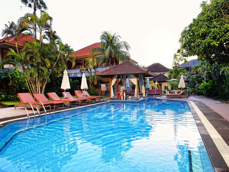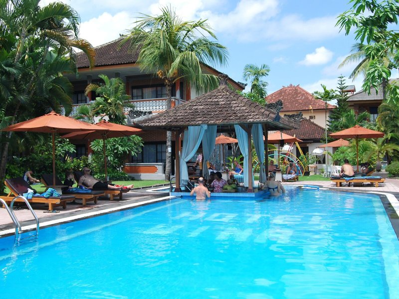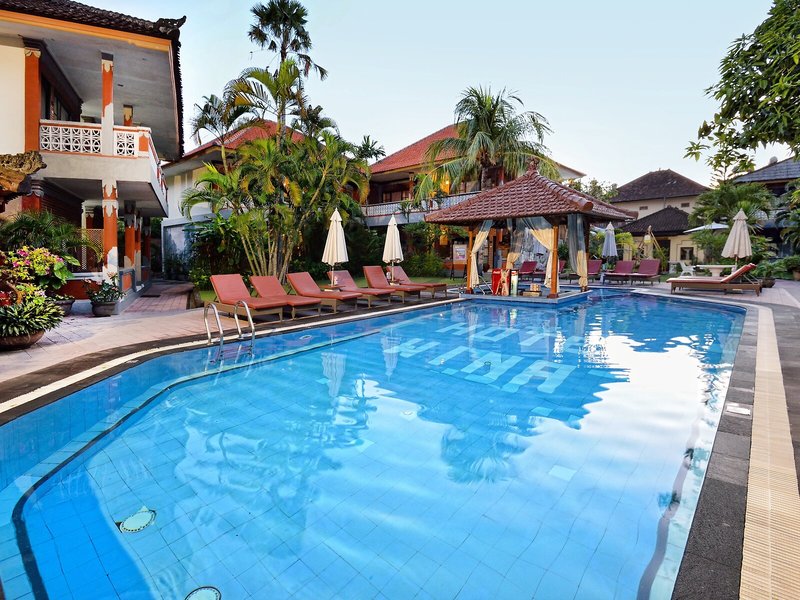 Poloha a okolie Hotelový komplex strednej kategórie sa nachádza uprostred tropických záhrad a len 2 minúty chôdze od rozsiahlej piesočnatej pláže. Je to tiež len 15 minút chôdze od pláže Legian. Do centra mesta s početnými nákupnými možnosťami a reštauráciami sa dostanete pešo asi za 4 minúty. Transfer na letisko trvá približne 15 minút.