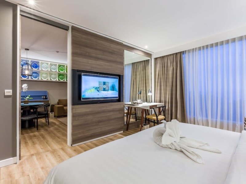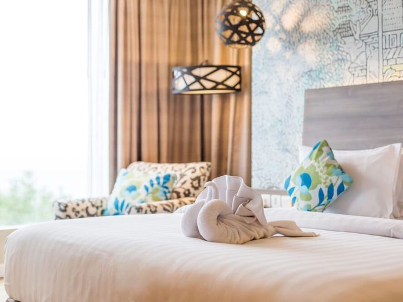 Ubytovanie: Izby majú obývaciu izbu a kúpeľňu, príjemnú klímu v miestnosti zabezpečuje klimatizácia. Väčšina izieb má balkón alebo súkromnú terasu, kde si hostia môžu oddýchnuť a vychutnať si výhľad na more. Izby majú posteľ king a rozkladaciu pohovku. Prístelky je možné vyžiadať. K dispozícii je aj trezor, minibar a písací stôl. K dispozícii je tiež chladnička, minichladnička a príslušenstvo na prípravu čaju/kávy. Pre väčšie pohodlie hostí je k dispozícii súprava na žehlenie. Okrem toho je k dispozícii telefón, satelitná TV, zásuvkový adaptér a WiFi (zdarma). K ďalšiemu vybaveniu patria papuče. Kúpeľňa je vybavená sprchovacím kútom, vaňou, sušičom vlasov a županmi. Kozmetické výrobky poskytujú extra pohodlie v kúpeľniach. Hotel ponúka nefajčiarske izby.