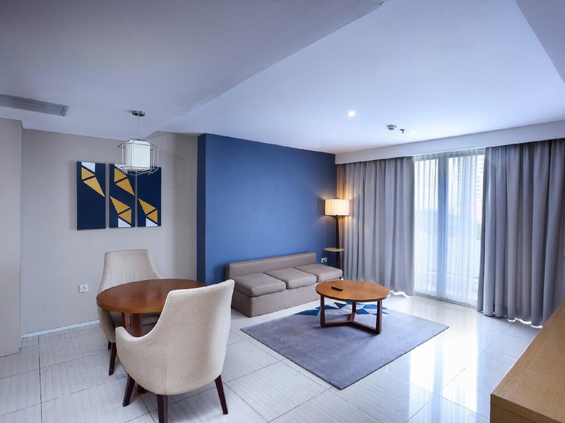 Ubytovanie: Izby majú obývaciu izbu a kúpeľňu a klimatizácia zabezpečuje príjemnú vnútornú klímu. Hostia si môžu vychutnať výhľad na mesto z balkóna alebo terasy, čo je štandardom vo väčšine izieb. Izby sú vybavené manželskou posteľou, manželskou posteľou alebo posteľou veľkosti queen. K dispozícii sú samostatné spálne. Prístelky je možné požiadať. K dispozícii je aj trezor, minibar a písací stôl. Štandardom je aj chladnička, mikrovlnná rúra a príslušenstvo na prípravu kávy/čaju. Pre pohodlie hostí je k dispozícii žehliaca súprava. K dispozícii je aj telefón, TV so satelitnými/káblovými programami a Wi-Fi pripojenie na internet (bezplatne). Vybavenie izieb zahŕňa papuče. Kúpeľňa so sprchovacím kútom a vaňou ponúka hosťom sušič vlasov a župany. Ako špeciálne vybavenie sú k dispozícii toaletné potreby a výber uterákov v kúpeľniach. K dispozícii sú aj bezbariérové izby s bezbariérovými kúpeľňami. Hotel ponúka rodinné, nefajčiarske a fajčiarske izby.