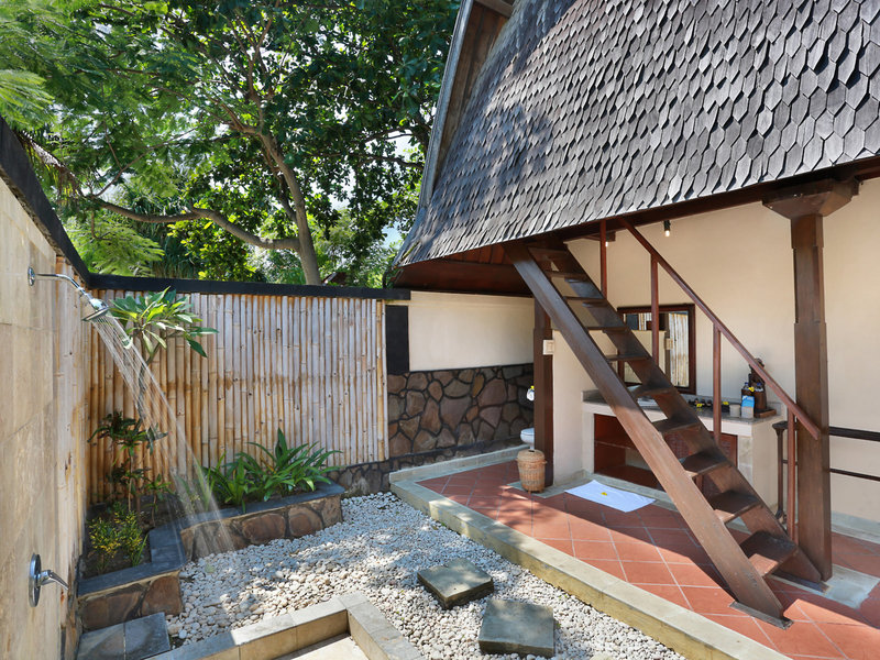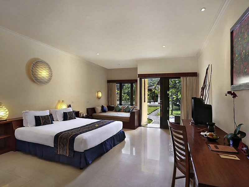 - Superior Lumbung Terrace Room (DZX1), Doppelzimmer, Nichtraucherzimmer, Gartenseite, Gartenblick, ca. 33 m², Gesamtanzahl der Räume in diesem Zimmertyp: 1, Aufteilung wie folgt: 1 Schlafzimmer, 1 Doppelbett (160x200cm), Klimaanlage: ohne Gebühr, individuell regelbar, Fußboden: Fliesenboden, Safe: ohne Gebühr, Schreibtisch, Wasserkocher, Minibar: gegen Gebühr, Telefon, Internet: WLAN/WiFi: ohne Gebühr, Fernseher: Flatscreen, Sat-TV, Kabel-TV, Roomservice: täglich 24 Stunden, ohne Gebühr, Dusche, separate Dusche, WC, Slipper: ohne Gebühr, Föhn, Balkon: mit Liegen, Balkon oder Terrasse: mit Sitzgelegenheit, Terrasse: mit Sitzgelegenheit