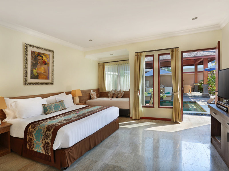 - Deluxe Ombak Room (DZX2), Doppelzimmer, Nichtraucherzimmer, Gartenseite, Gartenblick, ca. 63 m², Gesamtanzahl der Räume in diesem Zimmertyp: 1, Aufteilung wie folgt: 1 Schlafzimmer, 1 Doppelbett (160x200cm), 1 Schlafsofa (155x185cm), Klimaanlage: individuell regelbar, Fußboden: Fliesenboden, Safe: ohne Gebühr, Sitzecke, Wasserkocher, Minibar: gegen Gebühr, Telefon, Internet: WLAN/WiFi: ohne Gebühr, Fernseher: Flatscreen, im Wohnbereich, Sat-TV, Kabel-TV, Roomservice: täglich 24 Stunden, ohne Gebühr, Dusche, separate Dusche, WC, Slipper: ohne Gebühr, Föhn, Terrasse: mit Sitzgelegenheit