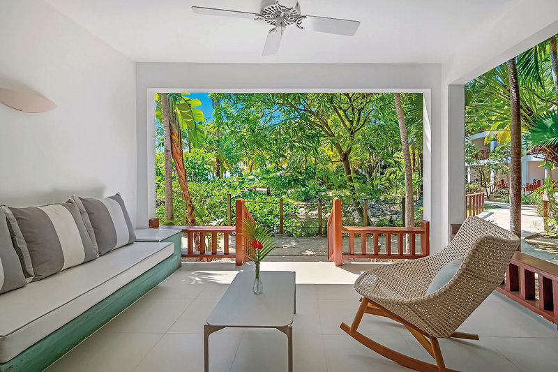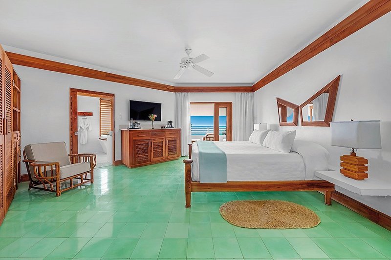 - 36-40 qm, Suite, Strandlage, Meerblick (zum Teil), Doppelbett, Dusche, Bademantel, Haartrockner, Klimaanlage, Ventilator, Minibar, Safe, Bügelbrett, Bügeleisen, iPod-Dockingstation, Kaffee/Tee, Balkon oder Terrasse