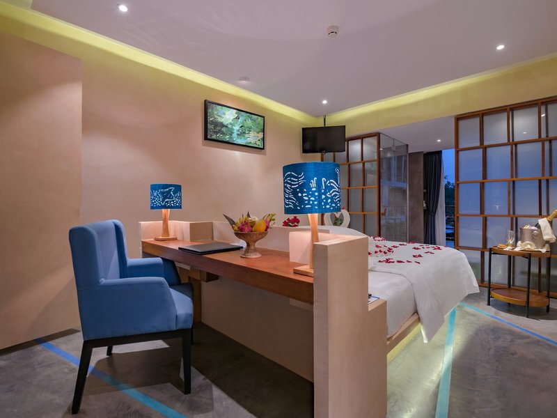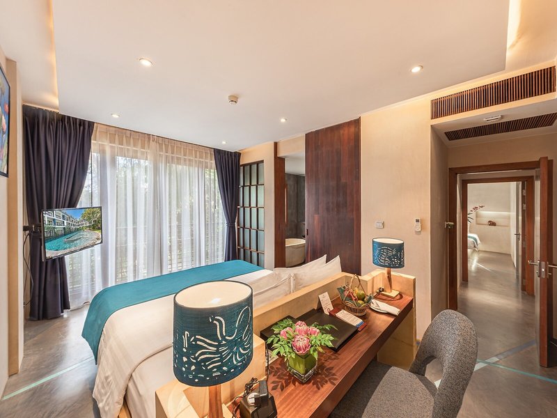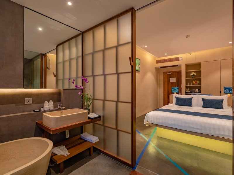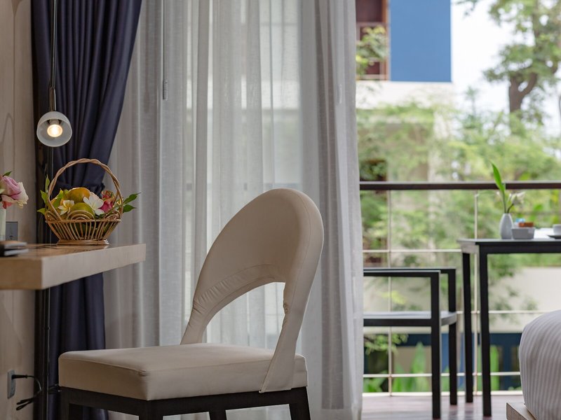 - Deluxe (DZX1), Dvojlôžková izba, v hlavnej budove, pri bazéne, výhľad na bazén, výhľad do záhrady, cca. 36 - 36 m², celkový počet izieb v tomto type izby: 1, rozloženie nasledovné: 1 spálňa, 1 manželská posteľ (180x200cm), detská postieľka: zadarmo, klimatizácia: zadarmo, individuálne ovládaná, chladenie, podlaha: dlažba, písací stôl, chladnička: zadarmo, kávovar/čajník, rýchlovarná kanvica, minibar: za poplatok, voda: zadarmo, telefón, internet: WLAN/WiFi: zadarmo, televízor: plochá obrazovka, v spálni, satelitná TV, káblová TV, izbová služba: denne, za poplatok, upratovacia služba: denne, zadarmo, sprcha, dažďová sprcha, WC, župan: zadarmo, papuče: zadarmo, fén, kozmetické zrkadlo, balkón, francúzsky balkón