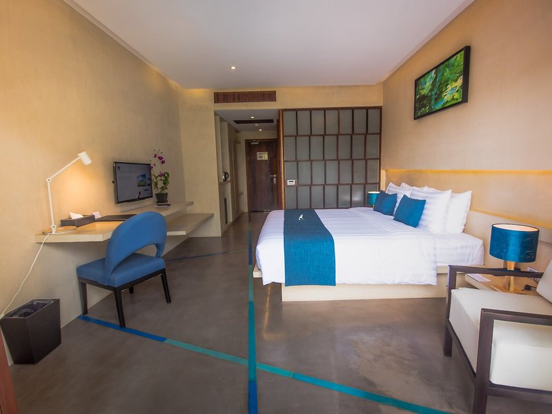 - Deluxe (DZX1), Doppelzimmer, im Hauptgebäude, Poolseite, Poolblick, Gartenblick, ca. 36 - 36 m², Gesamtanzahl der Räume in diesem Zimmertyp: 1, Aufteilung wie folgt: 1 Schlafzimmer, 1 King Size Bett (180x200cm), Babybett: ohne Gebühr, Klimaanlage: ohne Gebühr, individuell regelbar, kalt, Fußboden: Fliesenboden, Schreibtisch, Kühlschrank: ohne Gebühr, Kaffee-/Teezubereiter, Wasserkocher, Minibar: gegen Gebühr, Wasser: ohne Gebühr, Telefon, Internet: WLAN/WiFi: ohne Gebühr, Fernseher: Flatscreen, im Schlafzimmer, Sat-TV, Kabel-TV, Roomservice: täglich, gegen Gebühr, Reinigungsservice: täglich, ohne Gebühr, Dusche, Regendusche, WC, Bademantel: ohne Gebühr, Slipper: ohne Gebühr, Föhn, Kosmetikspiegel, Balkon, Französischer Balkon