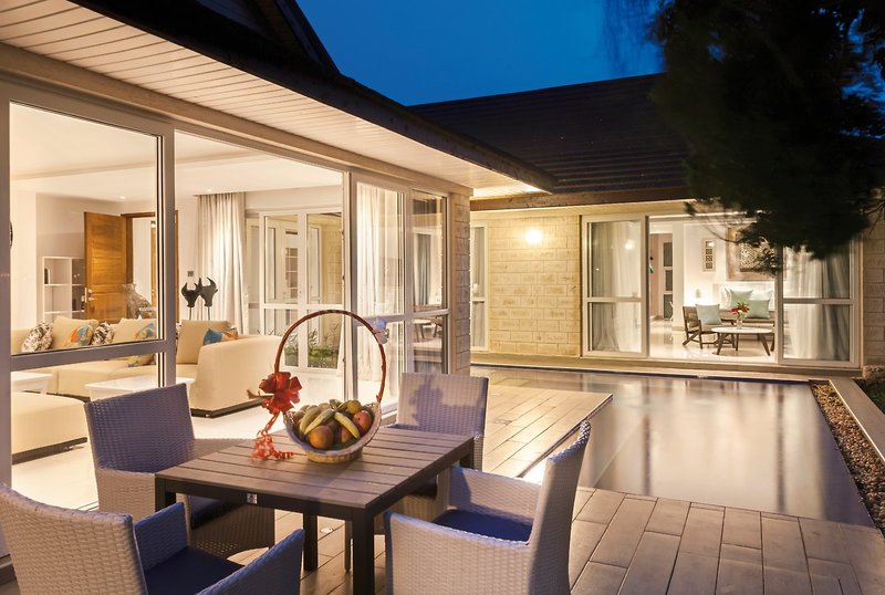 - 101-120 qm, Villa, Gartenblick, Poolblick, Bettwäsche, Handtücher und Matratzen aus 100% Bio-Baumwolle, 2 separate Schlafzimmer, separater Wohnraum, 2 Bäder, Dusche, WC, Haartrockner, Klimaanlage, Minibar kostenpflichtig, Safe, TV (Flachbildschirm), DVD-Player, WLAN, Wasserkocher, Kaffee/Tee, Terrasse, Privatpool