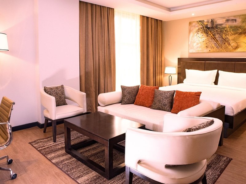Vaše ubytovanie: Izby majú kuchyňu a kúpeľňu a klimatizácia zabezpečuje príjemnú vnútornú klímu. Izby sú vybavené manželskou posteľou veľkosti king. Prístelky je možné požiadať. K dispozícii je aj trezor, minibar a písací stôl. K dispozícii je aj mikrovlnná rúra a príslušenstvo na prípravu čaju/kávy. Pre pohodlie hostí je k dispozícii žehliaca súprava. Okrem toho je k dispozícii telefón, TV so satelitnými/káblovými programami a Wi-Fi pripojenie na internet (bezplatné). Kúpeľňa so sprchovacím kútom a vaňou ponúka sušič vlasov a župany. Ako špeciálne vybavenie si hostia môžu vychutnať toaletné potreby a výber uterákov v kúpeľniach. K dispozícii sú aj bezbariérové izby s bezbariérovou kúpeľňou. Hotel ponúka rodinné a nefajčiarske izby.